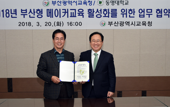 부산시교육청은 20일 교육감실에서 동명대학교와 부산형 메이커교육 활성화를 위한 업무협약을 체결했다.