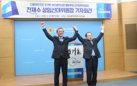 전 의원은 “'문재인 대통령의 정치적 고향인 부산'은 이제 문재인 정부와 함께 반드시 성공해야 한다”며 “오거돈 후보와 함께 부산시민의 열망을 받들어 반드시 부산지방권력 교체를 이끌어내겠다”고 말했다.