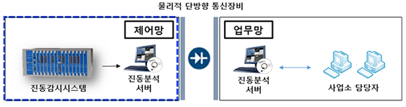 이전까지 국가기반시설인 발전소 제어시스템은 해킹공격을 원천 차단해야 하기에 제어망과 업무망이 물리적으로 분리돼 있었고 정보보안 강화로 인해 제어망 내에 설치된 진동감시시스템 접속이 불가능 했으나, 이번 진동원격감시시스템 구축을 통해 물리적 단방향장치를 활용하여 제어망 내에 위치한 진동데이터를 언제 어디서나 분석·진단 할 수 있게 되었다.