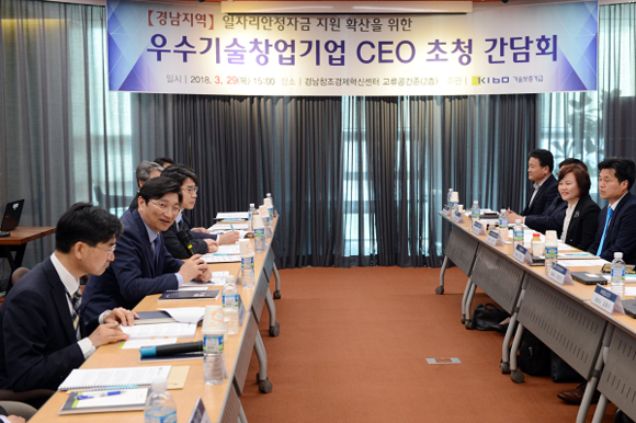 기술보증기금은 29일 경남창조경제혁신센터에서 최저임금 인상 등에 따른 현장의 애로사항을 청취하고, 정부의 일자리 안정자금 사업 안내를 위해 김규옥 이사장 주재로 경남지역 간담회를 개최했다.