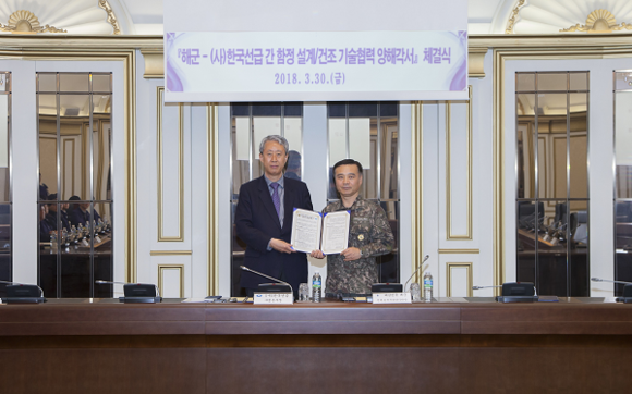 한국선급(KR)은 30일 부산 본사에서 해군 전력분석시험평가단과 해군 함정 설계 및 건조기술 발전을 위해 상호 교류·협력에 관한 양해각서를 체결했다.