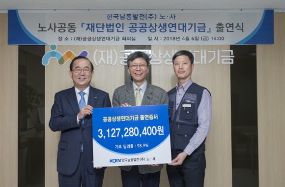 한국남동발전은 6일 공공상생연대기금에서 노·사 공동 '공공상생연대기금 출연식'을 갖고 기금 31억 2천만원을 출연했다.