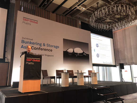 ▲UPA 고상환 사장이 싱가포르에서 열린 'Bunkering & Storage Asia Conference'에서 발표하고 있다. (사진=UPA)