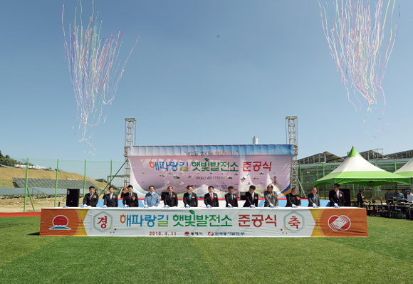 한국동서발전은 11일 동해시 동트는 야구장에서 '해파랑길 햇빛발전소 준공식'을 개최했다고 밝혔다.