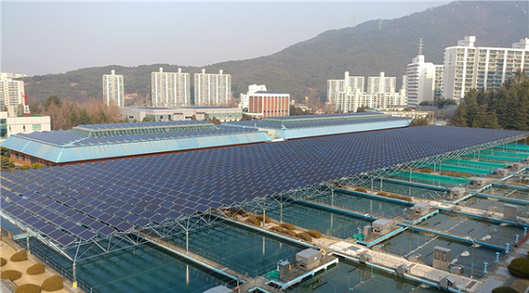 ▲화명정수장에 설치된 '메가와트급 ESS연계 태양광 발전소' 모습. (사진=부산시)