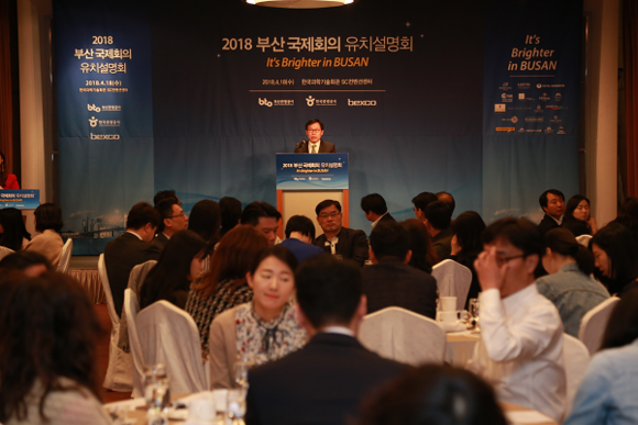 부산관광공사는 18일 서울 한국과학기술회관에서 국제회의 도시인 부산의 MICE 산업 여건을 소개·홍보하기 위한 '2018 부산 국제회의 유치설명회'를 개최했다.