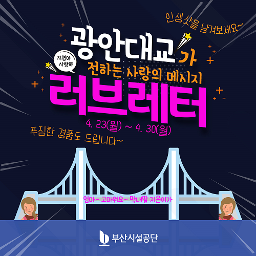 부산시설공단은 5월 가정의 달을 맞아 오는 23일부터 '광안대교 러브레터 이벤트'를 개최한다고 20일 밝혔다.