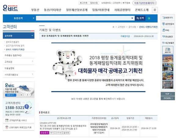 ▲2018 평창동계올림픽 및 동계패럴림픽 대회물자 매각 화면. (사진=캠코)