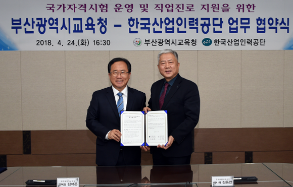 부산시교육청은 24일 시교육청 전략회의실에서 중·고등학생들의 직업진로 지원과 국가자격시험의 원활한 운영을 위해 한국산업인력공단과 업무협약을 체결했다.