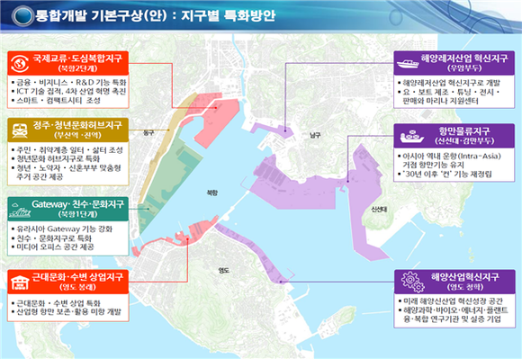 해수부는 이번 통합개발 기본계획 수립을 토대로 부산항 북항 일원을 해운·금융·산업과 관광·문화가 어우러진 친수공간으로 탈바꿈시켜 신규 일자리 창출과 지역경제 활성화에 기여할 방침이다.