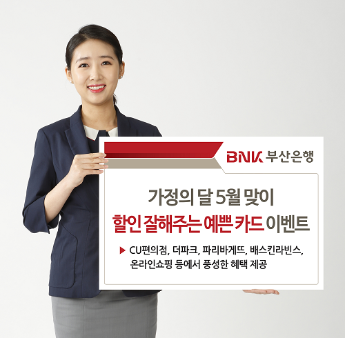 BNK부산은행이 5월 가정의 달을 맞아 부산은행 개인카드 고객에게 다양한 혜택을 제공하는 '할인 잘해주는 예쁜 카드' 이벤트를 실시한다.