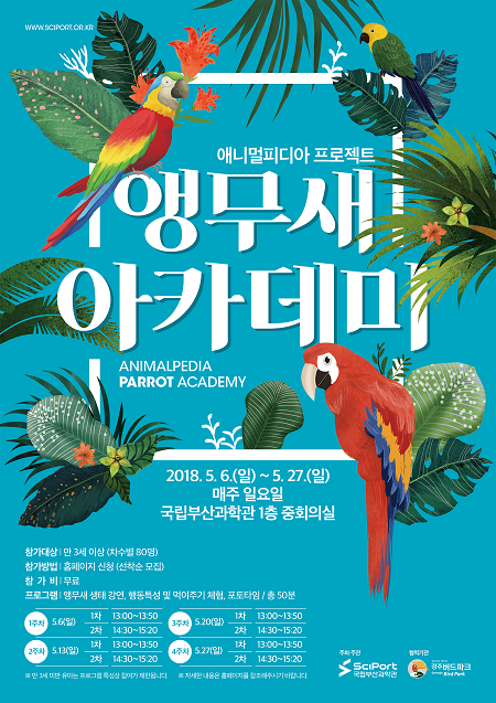 국립부산과학관은 가정의 달을 맞아 5월 한 달간 매주 일요일 앵무새 체험이벤트 '애니멀피디아 프로젝트 – 앵무새 아카데미'를 개최한다고 4일 밝혔다.