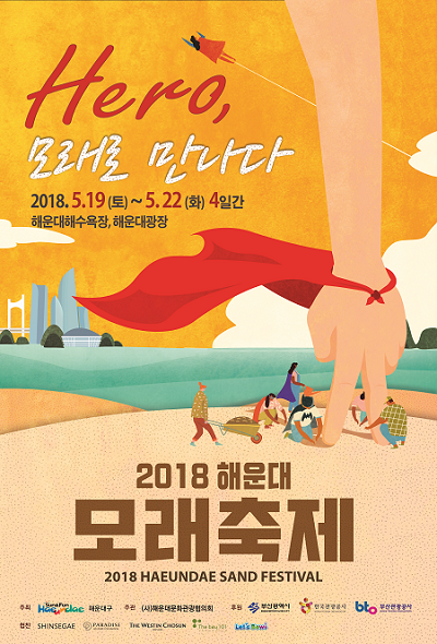 '2018 해운대모래축제'가 오는 19일부터 22일까지 나흘간 'Hero, 모래로 만나다'를 주제로 해운대해수욕장과 해운대광장 일원에서 펼쳐진다.