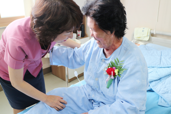 카네이션을 받은 어르신 환자들은 “생각지도 못한 뜻밖의 카네이션을 선물 받아 기분이 좋다. 병원에서 꽃을 받으니 낯설지만 위로와 힘이 된다”고 소감을 밝혔다.