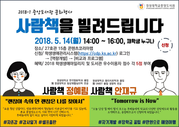 경성대학교 중앙도서관은 재학생들과 소통하고 공감하는 도서관문화 정착을 위해 오는 14일 '사람책을 빌려드립니다' 문화행사를 개최한다.