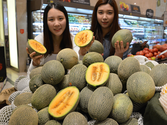 롯데백화점 광복점 지하 1층 식품관에 중국 황제에게 진상해 황제의 과일로 불리는 멜론 '하미과'가 출시돼 눈길을 끌고 있다. 중국 신장지역이 주산지로 파파야 멜론보다 당도가 뛰어나고 배의 단맛에 수박의 식감을 가진 품종으로 고령에서 시범재배에 성공해 고객들에게 선보이고 있다. (사진=롯데백화점)