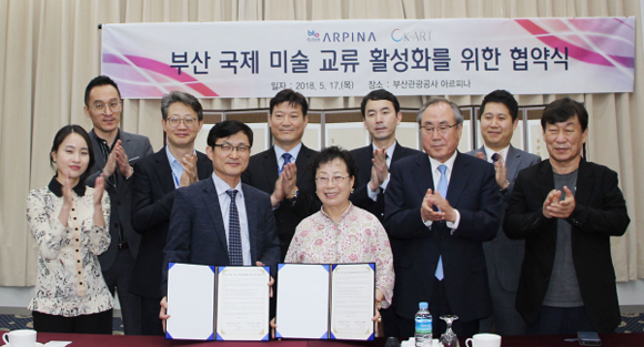 부산관광공사 아르피나와 (사)케이아트국제교류협회는 17일 아르피나 8층 시걸룸에서 업무협약을 맺고 상호이해와 협력으로 부산을 기점으로 한 국제 미술교류 확대를 위해 공동으로 증진하기로 했다고 18일 밝혔다.