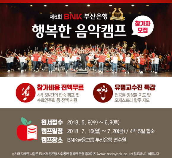 BNK부산은행이 '제6회 BNK행복한 음악캠프'를 개최하고 캠프 참가자를 모집한다고 25일 밝혔다.