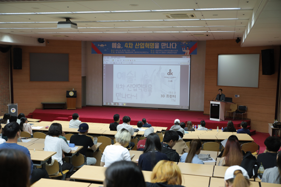 4차 산업혁명의 핵심으로 대두되는 드론, 3D프린터, VR을 예술적 관점에서 가치와 필요성을 찾고 새로운 창작 기회를 만들고자 개최한 이번 특강은 ▲오승환 교수(드론프레스)의 '예술과 드론의 만남' ▲고상륭 대표(디자이너스킹덤의 '예술과 3D프린터의 만남' ▲양병석 대표(코믹스V)의 '예술과 VR의 만남'을 주제로 진행됐다. 우리나라 4차 산업혁명을 대표하는 기업들이 총 출동해 미래를 꿈꾸는 청년들에게 예술 창작의 새로운 세계를 보여주었다.
