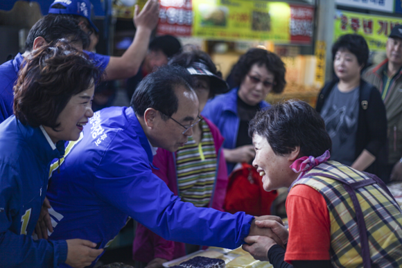 오후 1시부터 오 후보는 남구의 △용호동 △대연동 △수영동 팔도시장에서 시민들과 일일이 악수를 하는 등 소중한 한 표를 호소했다.
