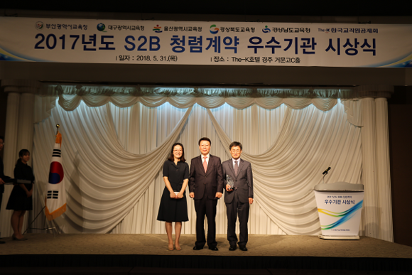 S2B는 행정자치부가 지정정보처리장치로 고시한 교육기관 전자조달시스템이다. 시상식은 지난달 31일 경주 더케이호텔에서 열렸다.