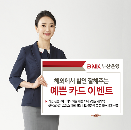 BNK부산은행은 개인 신용·체크카드회원을 대상으로 캐시백, 9만 9천원 해외항공권 등의 혜택을 제공하는 '해외에서 할인 잘해주는 예쁜 카드' 이벤트를 진행한다고 5일 밝혔다.