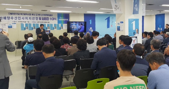 이어 김 전 회장은 “우리 해양·수산인 2만2천 명은 오거돈 후보와 함께 시민이 행복한 동북아 해양수도 부산을 만드는 일에 적극 앞장설 것”이라며 “오 후보의 당선을 통해 해양·수산분야 일자리 창출이 이뤄지는 행복한 부산을 만드는 것이 최종 목표”라고 말했다.