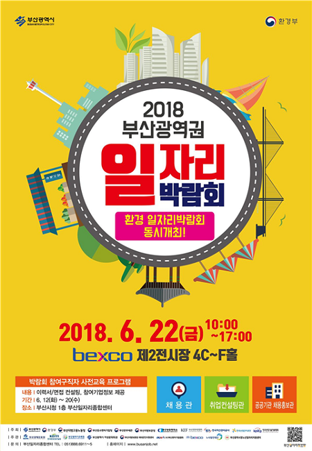 부산시는 오는 22일 오전 10시부터 오후 5시까지 벡스코 제2전시장에서 지역 기업의 인력난 해소와 구직자의 취업활동을 지원하고 실질적인 취업기회 및 정보제공의 장을 마련하기 위해 '2018년 부산광역권 일자리박람회'를 연다고 18일 밝혔다.