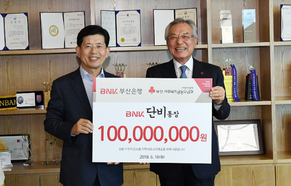 BNK부산은행은 18일 'BNK단비통장'의 연간 판매 수익금 1억 5천만원을 부산·울산 사회복지공동모금회에 기부했다.