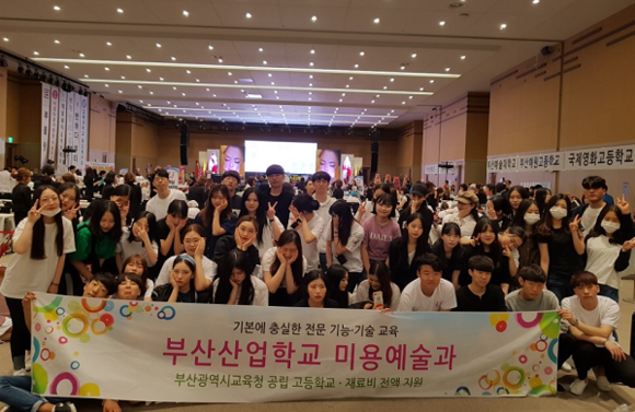 부산산업학교 미용예술과 학생 31명은 '헤어', '피부관리', '메이크업' 등 3개 분야에서 대상, 금상 등을 수상했다.
