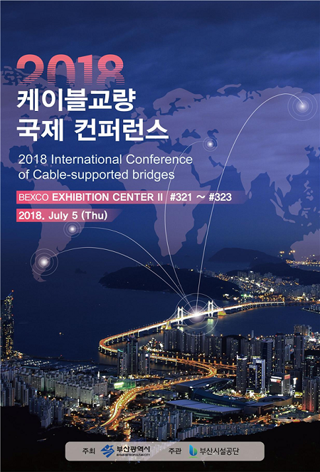 국내외 케이블교량 관련 7개국 32개 기관이 참여하는 2018 케이블교량 국제콘퍼런스가 오는 7월 5일 낮 12시 해운대 벡스코 제2전시장에서 열린다.