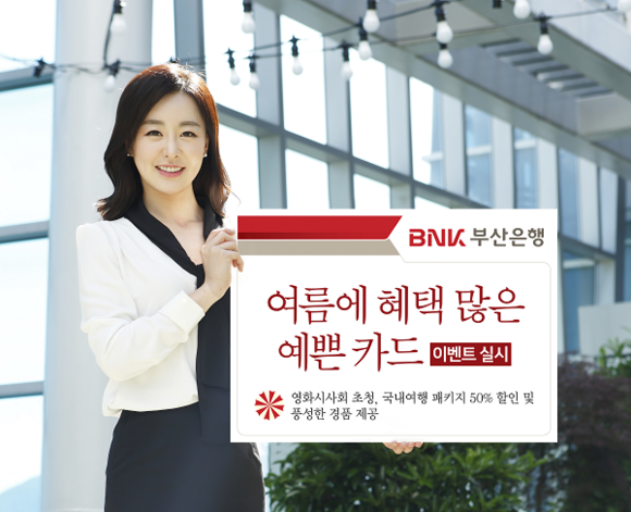 BNK부산은행은 본격적인 여름철을 맞아 개인 신용카드나 체크카드를 이용하면 제습기 등 경품제공과 여행패키지 50% 할인 혜택을 제공하는 '여름에 혜택 많은 예쁜 카드' 이벤트를 실시한다고 29일 밝혔다.