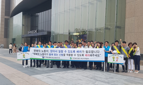 안전보건공단 부산지역본부는 지난달 29일 '백화점, 마트 등 판매직 노동자의 건강보호 문화 확산'을 위해 부산고용노동청·민간 재해예방기관과 합동 캠페인을 실시했다.