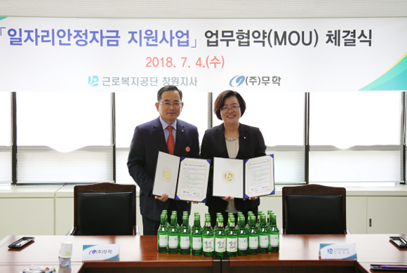 무학은 4일 근로복지공단 창원지부와 청년 일자리 창출을 위한 '일자리 안정자금 지원사업' 업무협약을 체결했다.