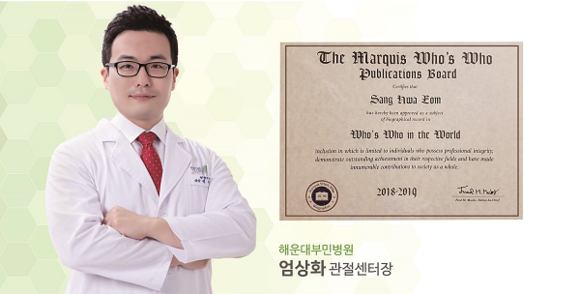 해운대부민병원은 엄상화 관절센터장(사진)이 세계 3대 인명사전 중 하나인 '마르퀴즈 후즈 후(Marquis Who’s Who in the world)' 2018년판에 등재됐다고 6일 밝혔다.
