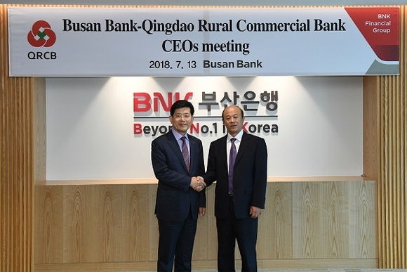 BNK부산은행은 13일 칭다오농상은행 류중생(刘仲生) 동사장을 포함한 대표단이 부산은행 본점을 방문해 양행 협력관계 강화방안에 대한 의견을 교환했다고 밝혔다.