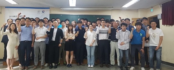▲동아대 중소기업 계약학과인 산업공학과 학생들이 2018년도 봄학기 팀 프로젝트 발표를 마치고 기념촬영을 하고 있다. (사진=동아대)