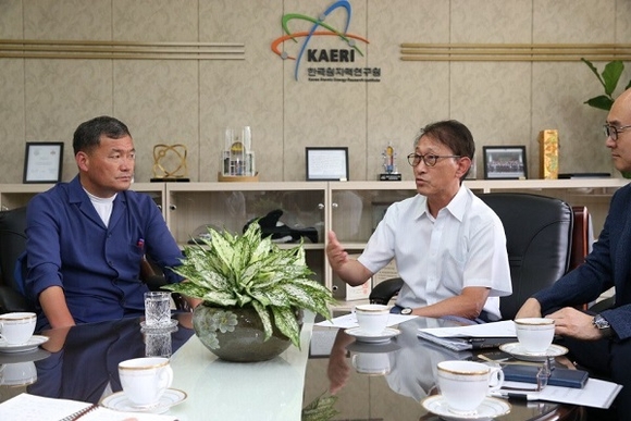 오규석 기장군수가 24일 기장군 동남권 방사선 의·과학 일반산업단지 내 유치되는 대형 국책사업인 '수출용 신형 연구로 개발사업'의 조속한 건설허가 승인을 위해 한국원자력연구원을 방문했다.