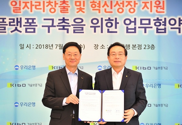 기술보증기금과 우리은행은 25일 서울 우리은행 본점에서 '일자리창출 및 혁신성장 지원 플랫폼 구축을 위한 기술금융지원 업무협약'을 체결했다.