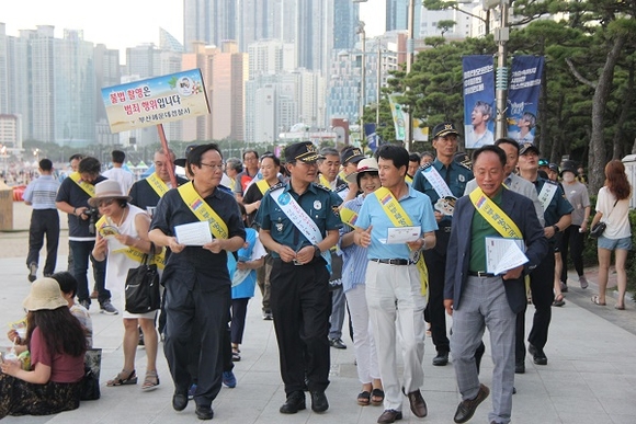 부산 해운대경찰서는 30일 오후 전국에서 가장 많은 피서객이 방문하는 해운대해수욕장에서 무질서 추방 캠페인과 합동 도보순찰을 실시했다.
