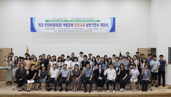 올해 상반기에는 30일부터 8월 16일까지 3개의 기수별로 공립단설유치원 및 초등학교 안전담당 교사 124명을 대상으로 직무연수를 실시하며, 춘해보건대 해악관 다목적시뮬레이션센터에서 진행된다, 연수담당 교수로는 춘해보건대 간호학과 신경미교수 외 4명 및 응급구조과 김미숙 교수 외 2명 총 8명이며, 1일 5시간씩 총 3일 15시간 이수과정으로 구성됐다.