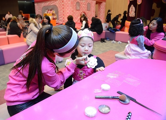 ▲지난해 롯데백화점 광복점 10층 문화홀에서 열린 어린이 고객 대상 이벤트에 참가한 어린이 고객이 화장 및 의상 체험을 하고 있다. (사진=롯데백화점)