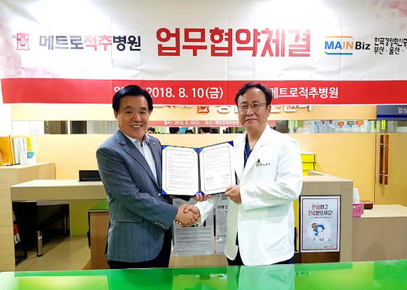 메트로적추병원은 (사)한국경영혁신중소기업협회 부산·울산·경남연합회와 10일 병원 지하 1층 종합검진센터에서 업무협약을 체결했다.