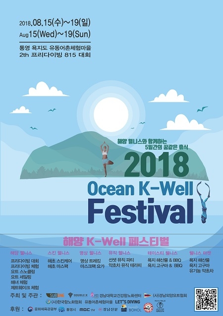 경남대학교 건강항노화센터는 오는 15일부터 19일까지 통영시 욕지도 유동어촌체험마을 일대에서 '2018 해양 K-well 페스티벌'을 개최한다.