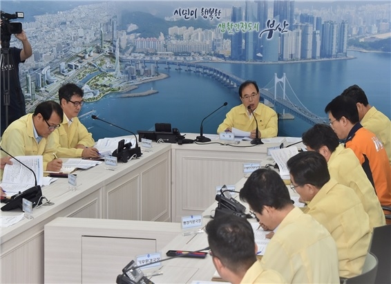 오거돈 부산시장은 부산지역 태풍예비특보 발령(22일 발효)에 따라 22일 오전 10시 시청 15층 재난안전대책본부에서 전 실·국장 및 16개 구·군 부단체장을 소집해 긴급 대책회의를 개최했다.