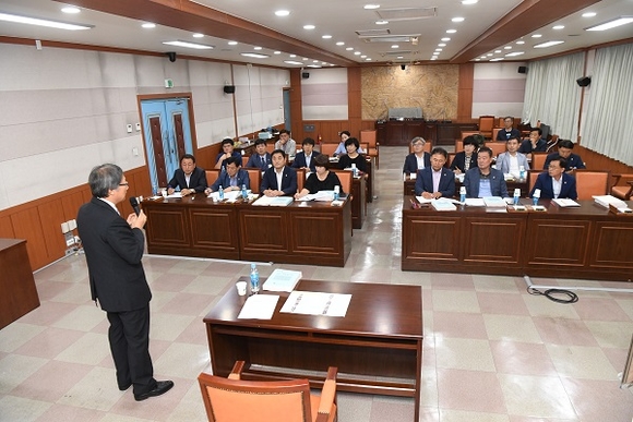 시의회는 이에 앞서 지난달 9일 제212회 임시회를 앞두고 의원들의 업무역량을 강화하기 위해 업무연찬회를 갖고 신해룡 교수(호서대 벤처대학원 및 한국산업기술원 지방자치 연수소 교수)를 초빙해 예산낭비에 대한 사례를 중심으로 지방재정운용여건과 방향, 지방예산심사기법, 결산심사기법 등을 교육받아 2018년도 추가경정예산안 심의에서 불요불급한 예산을 가려내는 등 시민들의 피와 땀의 결실인 예산이 한 푼이라도 헛되이 사용되지 않도록 했다.