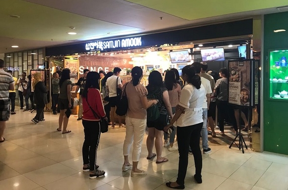 ▲가오픈 중인 삼진어묵 인도네시아 1호점에서 현지 소비자들이 줄지어 있는 모습. (사진=삼진어묵)