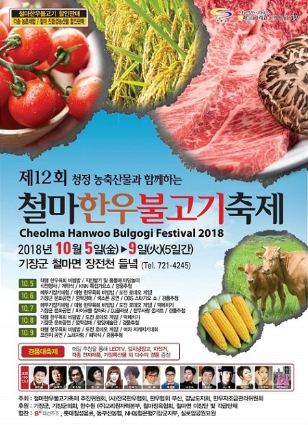 고즈넉한 들판에서 청정농축산물과 함께 철마한우를 즐길 수 있는 '철마한우불고기축제'가 10월 5일에서 9일까지 부산 기장군 철마면 장천면 들녘 일원에서 열린다.
