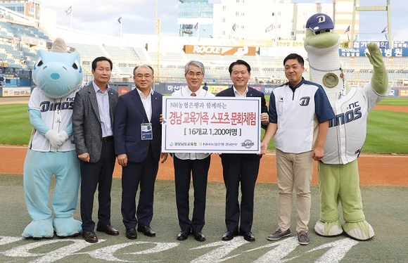NH농협은행 경남영업본부는 경상남도교육청, NC다이노스와 함께 지난 5일 마산야구장에서 경남 관내 초·중·고등학교 16개교 1200여명을 초청해 NC와 삼성의 홈경기를 관람하는 스포츠 문화체험 행사를 가졌다.
