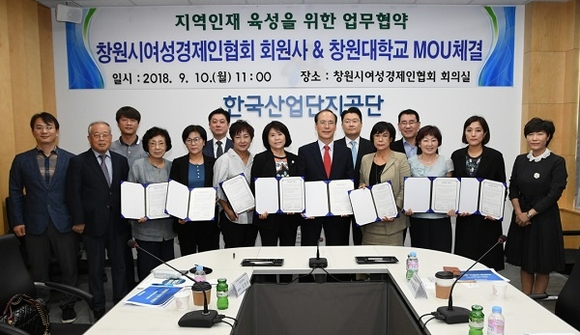 ▲10일 산업단지공단 경남본부에서 창원대와 창원시여성경제인협회가 '지역인재 육성 및 상생발전을 위한 산학협약'을 체결하고 있다. (사진=창원대)